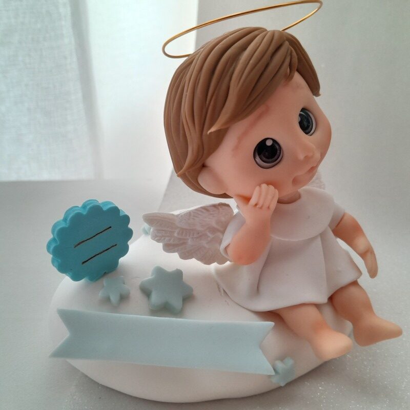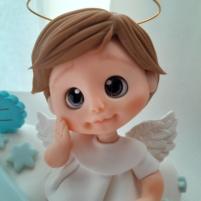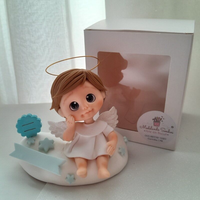 Peça feita em massa de biscuit, no tema Nascimento ou Batismo, criada com propósito de presentear e auxiliar a evangelização.