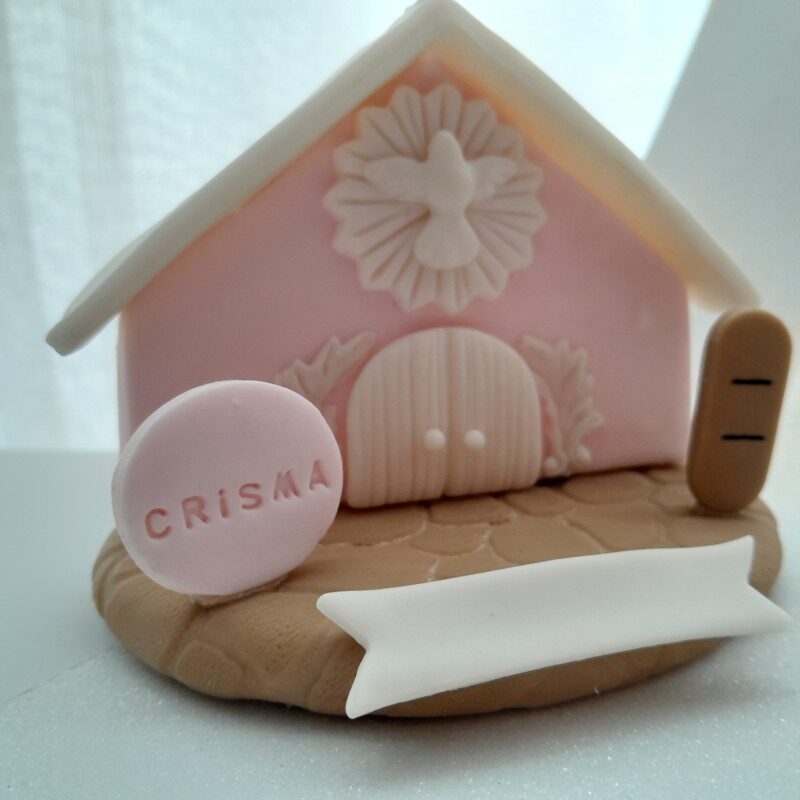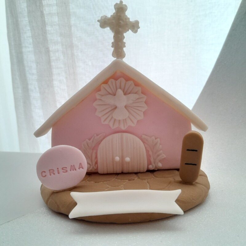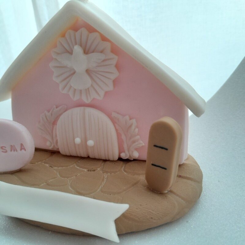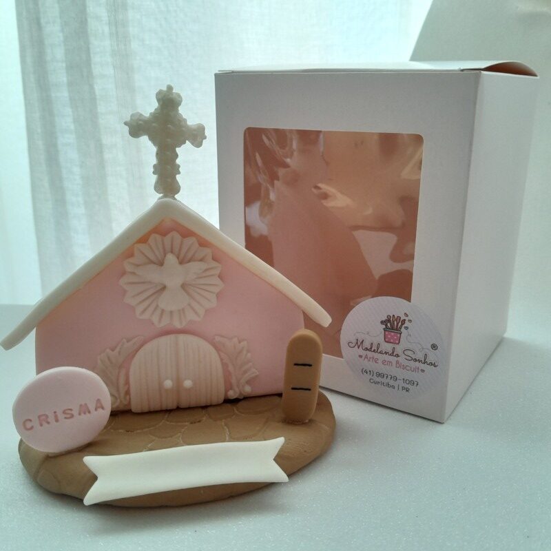 Peça feita em massa de biscuit, no tema Nascimento ou Batismo, criada com propósito de presentear e auxiliar a evangelização.
