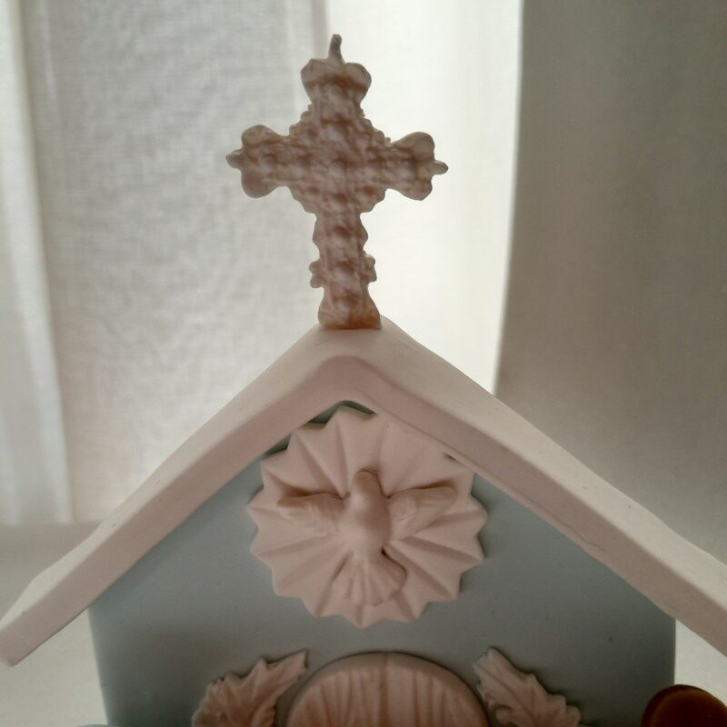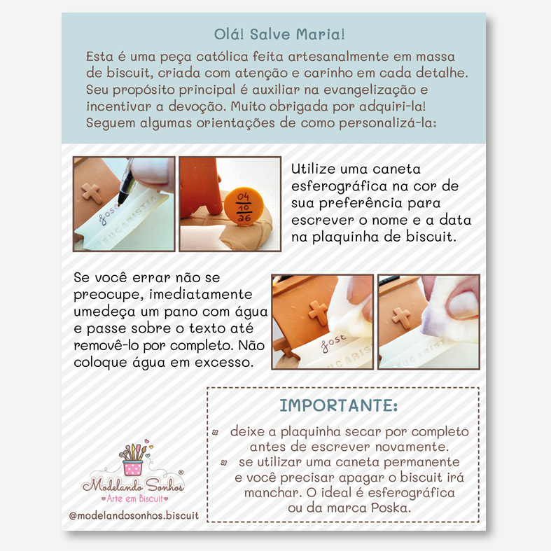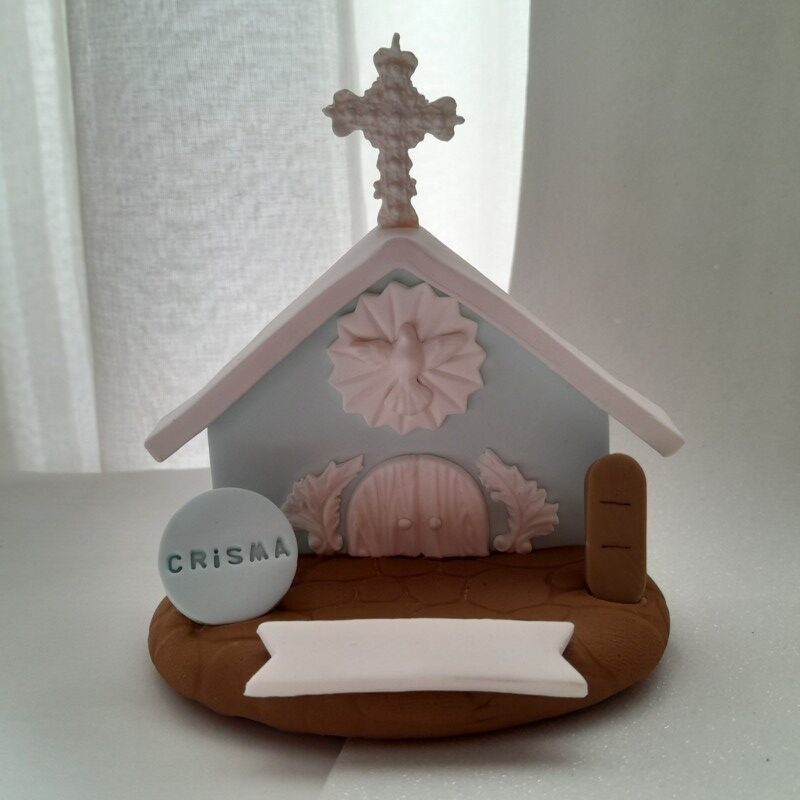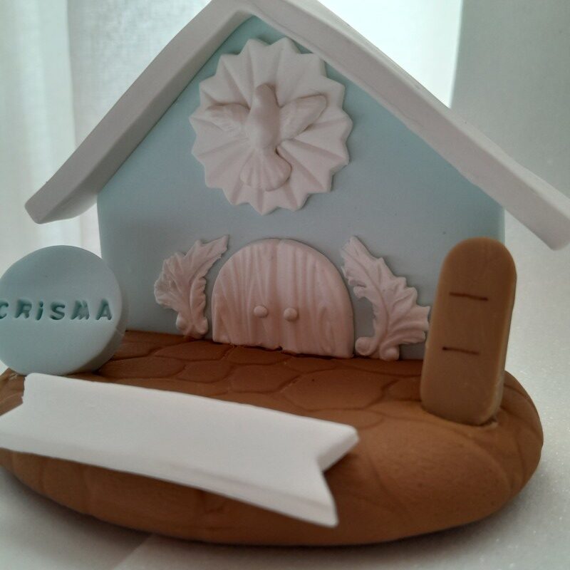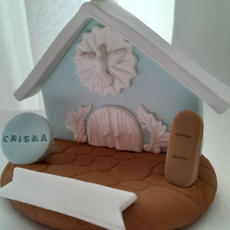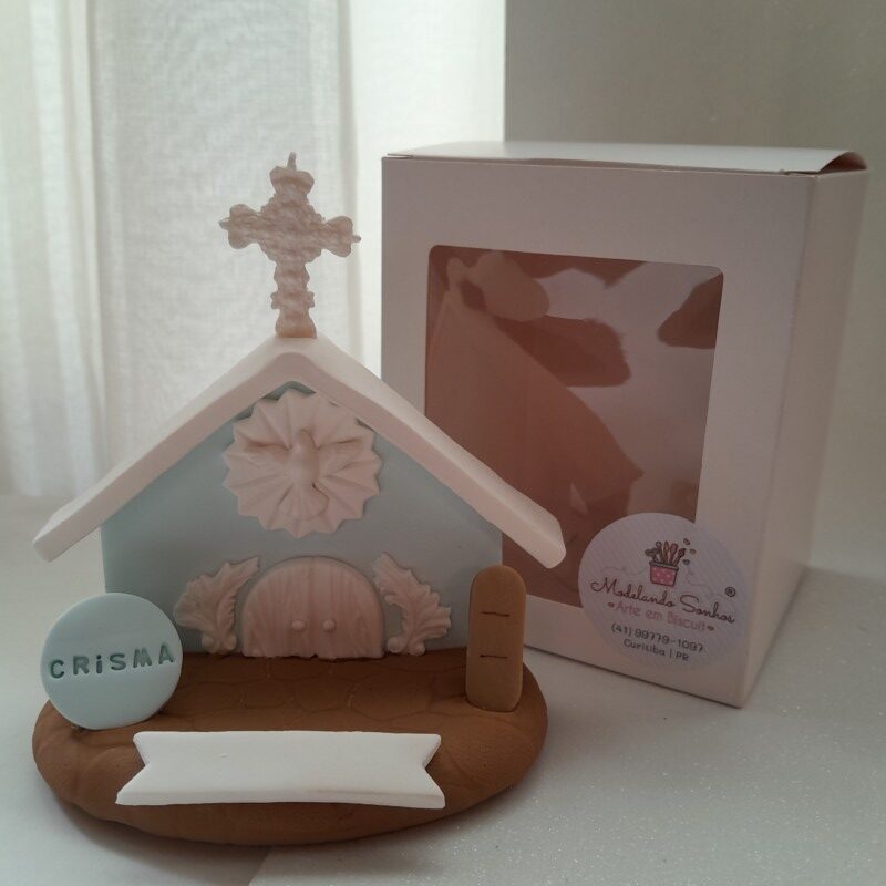 Peça feita em massa de biscuit, no tema Nascimento ou Batismo, criada com propósito de presentear e auxiliar a evangelização.