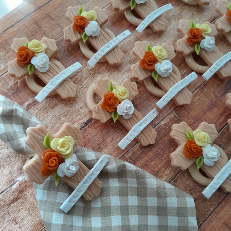 Argola de madeira: parte externa (4cm) / parte interna (2,5cm)