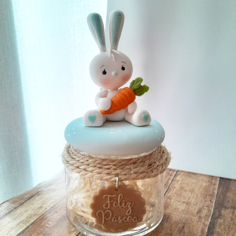 Pote Decorado Pequeno – Coelho branco com cenoura